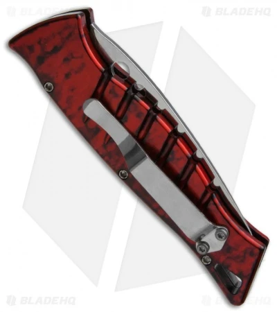 Piranha’s Amazon is another awesome automatic knife with hard-hitting action, so you’ll need to hold on tight! The 6061-T6 aluminum handles have grip grooves and a steel pocket clip. The 154-CM stainless steel blade has a great profile and masterfully integrated holes below the spine.