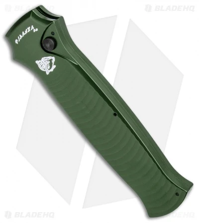 The Piranha Bodyguard is a contemporary spin on the classic stiletto style. These automatic knives fire hard and fast with the push of the button. The Bodyguard has an anodized 6061-T6 aluminum handle with the firing button on front and a titanium clip on back for tip-up carry. The blade is premium CPM-S30V stainless steel.