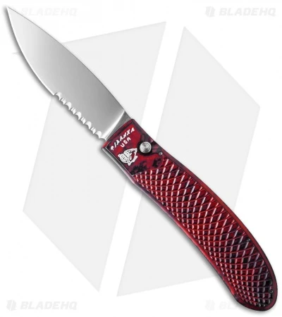 The Toxin is the latest edition to Piranha’s line of innovative automatic knives. It has a large ergonomic handle and a 3.75″ leaf shaped blade made from 154-CM steel. The handle was designed for comfortable everyday use and features a grippy texture and a titanium pocket clip. It is made from an anodized aircraft alloy with a Type 3 Hard Coat for strength and durability. The Piranha Toxin makes a great EDC knife that is both comfortable to use and carry.
