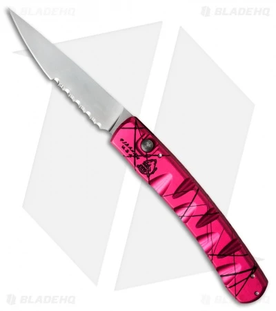 Piranha put their X model auto on a diet and the result is the Virus, a slim everyday carry automatic knife with loads of style and class. Differentiating marks of the Virus knife include the “file work” style handle grooves and a unique CNC machined texture along the edges for increased grip. Akin to other models, the 6061-T6 aluminum handle on the Virus is available in a number of finishes and fitted with a titanium pocket clip. Its flat ground CPM-S30V stainless steel blade is quick to attention with a push of the firing button.