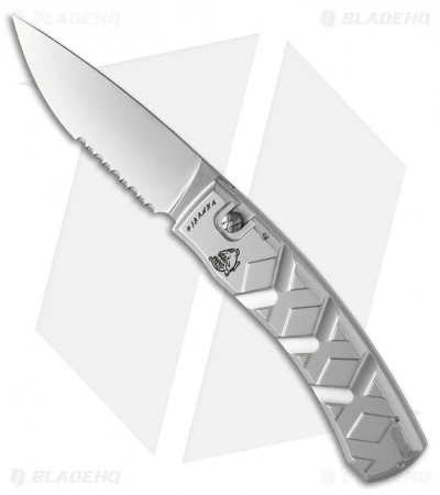 The Piranha-X offers knife fans a terrific design coupled with Piranha’s long-standing reputation for top-notch automatic action. The cross pattern milled aluminum handle inspired the name of the X auto and adds both usable texture and aesthetic appeal. Its full-flat ground drop point deploys with ease at the push of the firing button. For carry, the X automatic has a tip-up pocket clip and an elongated lanyard hole.